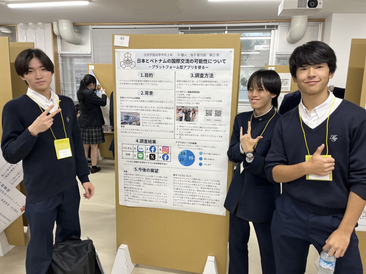 また、今年8月同校で行われた、ベトナムアカデミックキャンプに参加した生徒11名が、現地での調査結果をポスター発表にまとめ11月9日(日)に静岡大学浜松キャンパスにて開催された「探究・情報コンテスト」で成果を発表しました。