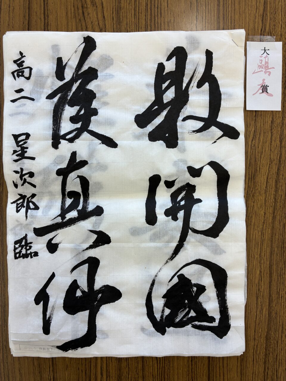 1月4日(日)、信濃町にある明治記念館にて『第48回鷗友書道展表彰式』が開催され、5,413点の中から学生部トップの【田岡正堂記念賞】を中学2年生の守江七都君が獲得しました。