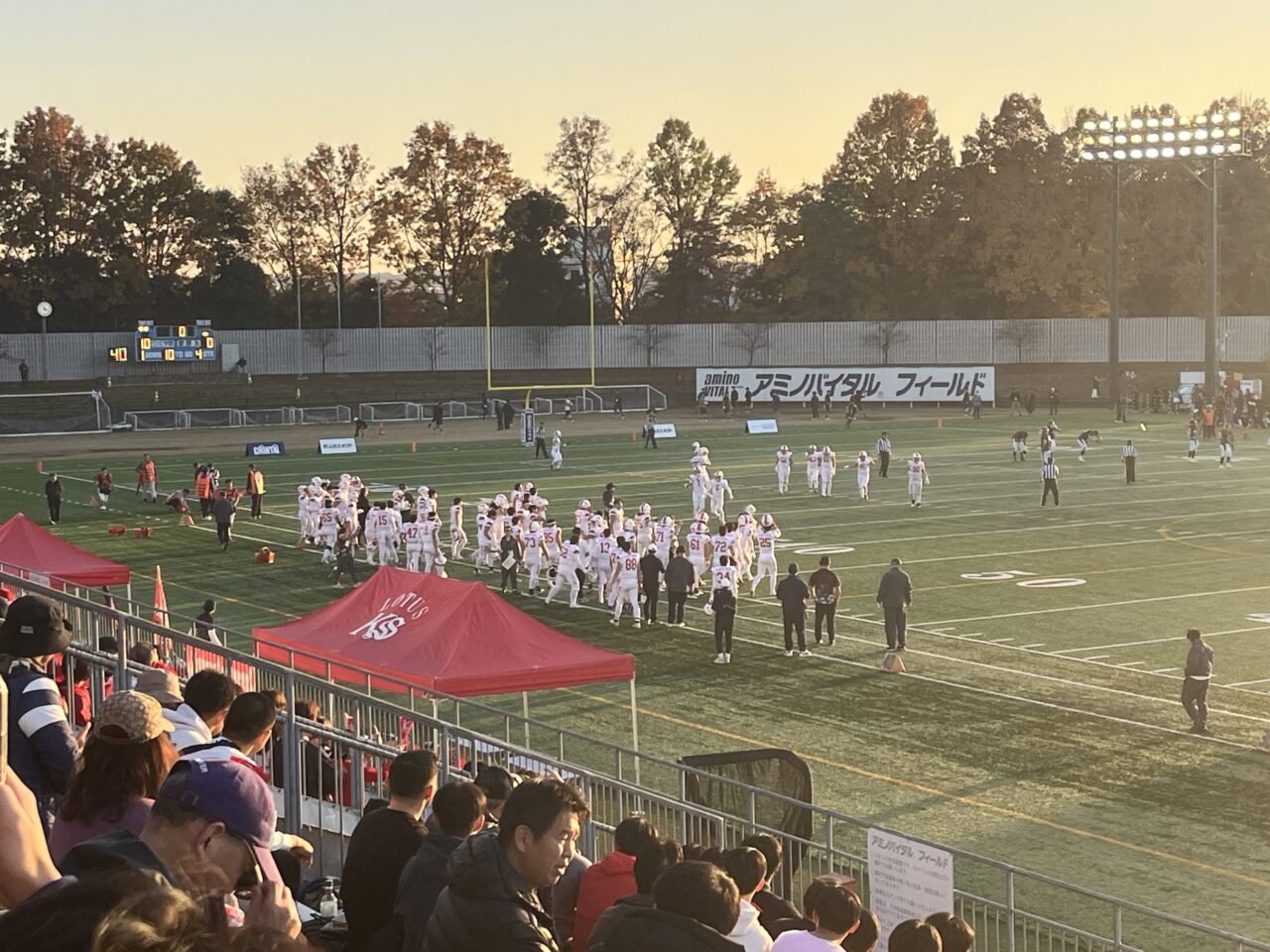 試合は前半を3-0で折り返す緊張感あふれる展開となり、後半も両校意地をかけての大接戦となりました。残り1分30秒、本校がタッチダウンを決め、続くフィールドゴールも成功。最終スコア10-0で勝利を収めました。