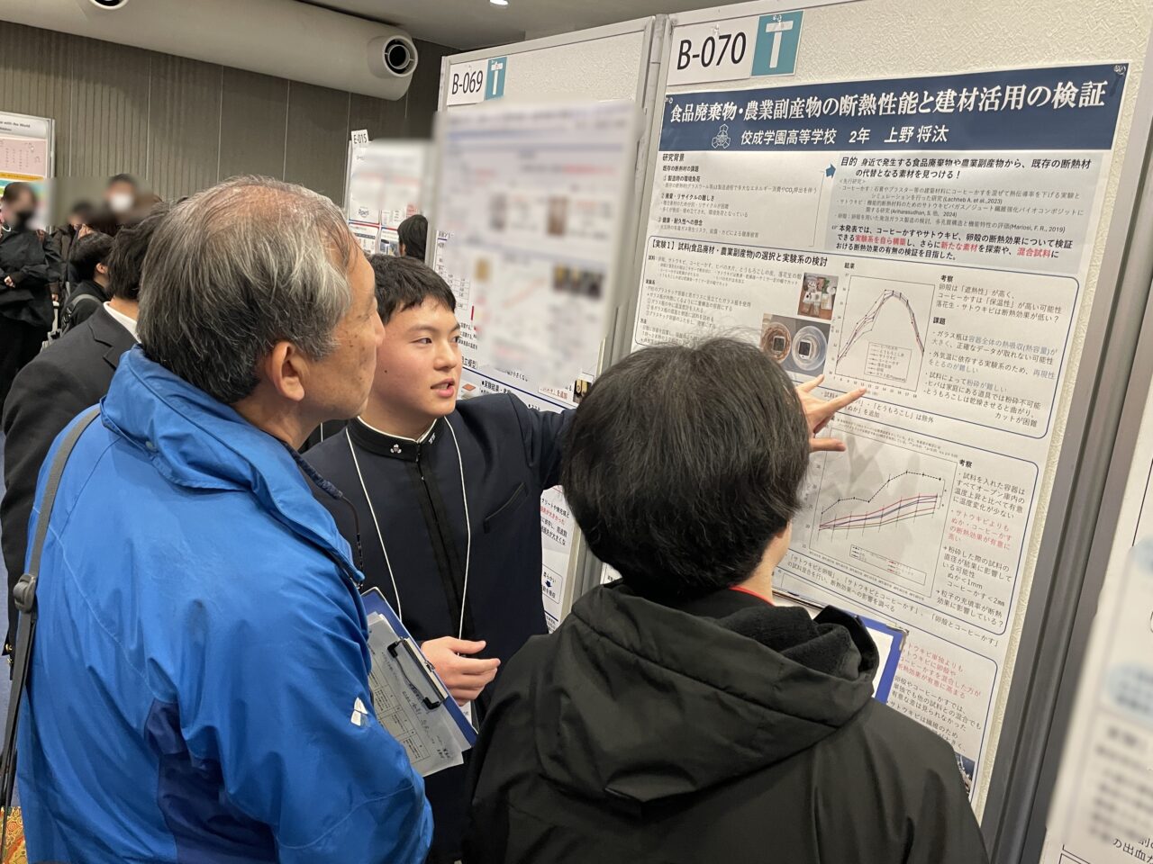 高2 上野 将汰 くん「食品廃棄物・農業副産物の断熱性能と建材活用の検証」(ポスター発表)